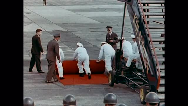 189783 - President John F. Kennedy and the Shah of Iran visit an airfield for a Marine Corp jet display.