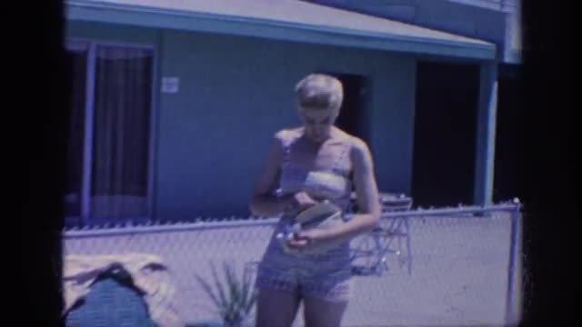 654652 - 1963: woman wearing bathing suit puts object into her small pocketbook MEMPHIS TENNESSEE
