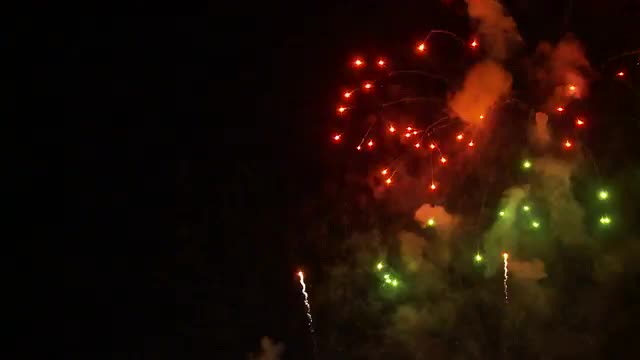 1115876 - Slow Motion Fireworks Display Happy Woman 4th of July