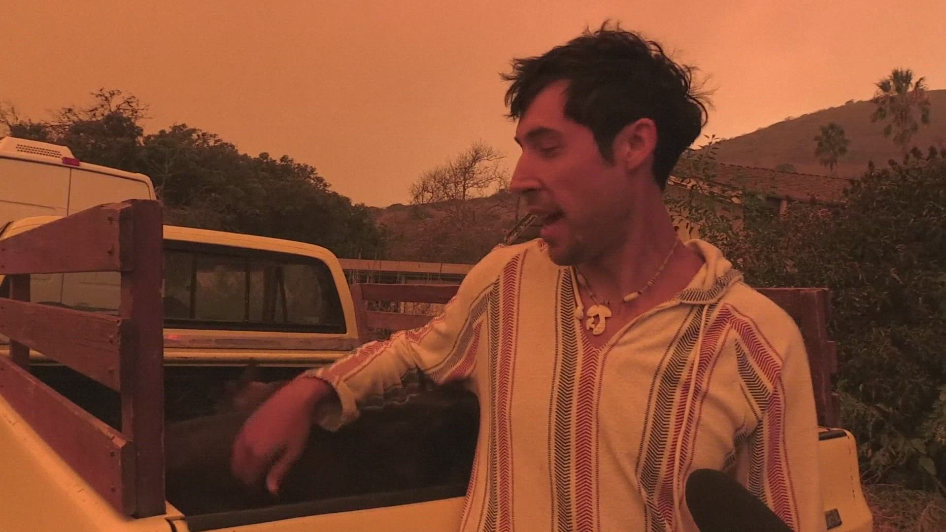 Woman walking barefoot rescued during California wildfires