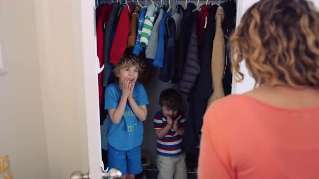 1094335 - Mother opens closet door to find hiding boys during hide and seek game RED