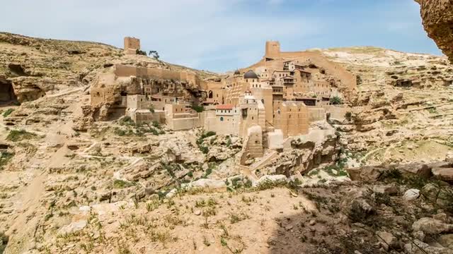 366670 - Mar Saba Monastery Timelapse in the Afternoon 4K