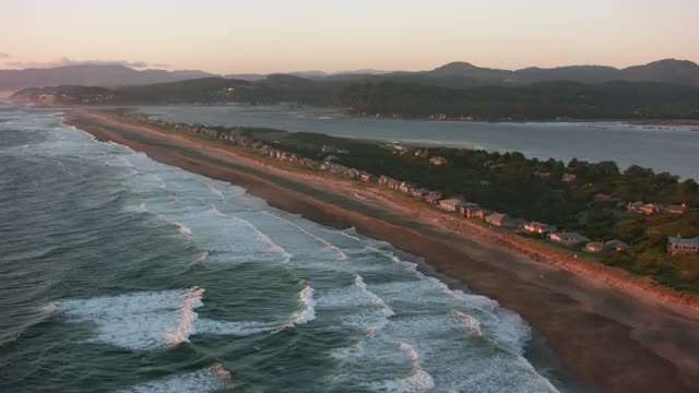Oregon Coast circa-2017, Aerial shot of the Salishan Spit along the Oregon Coast. Shot with Cineflex and RED Epic-W Helium.