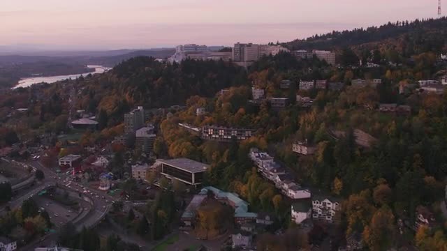 Portland, Oregon circa-2017, Aerial shot of Lake Oswego area in Fall. Shot with Cineflex and RED Ep