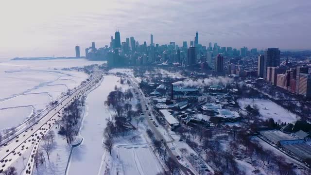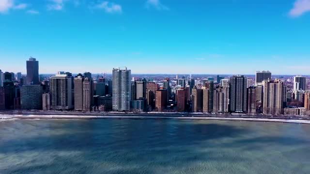 1061321 - Aerial footage of Chicago skyline from north side