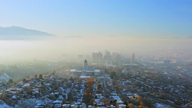 1127967 - Opening shot of Vancouver downtown on a cold blue morning