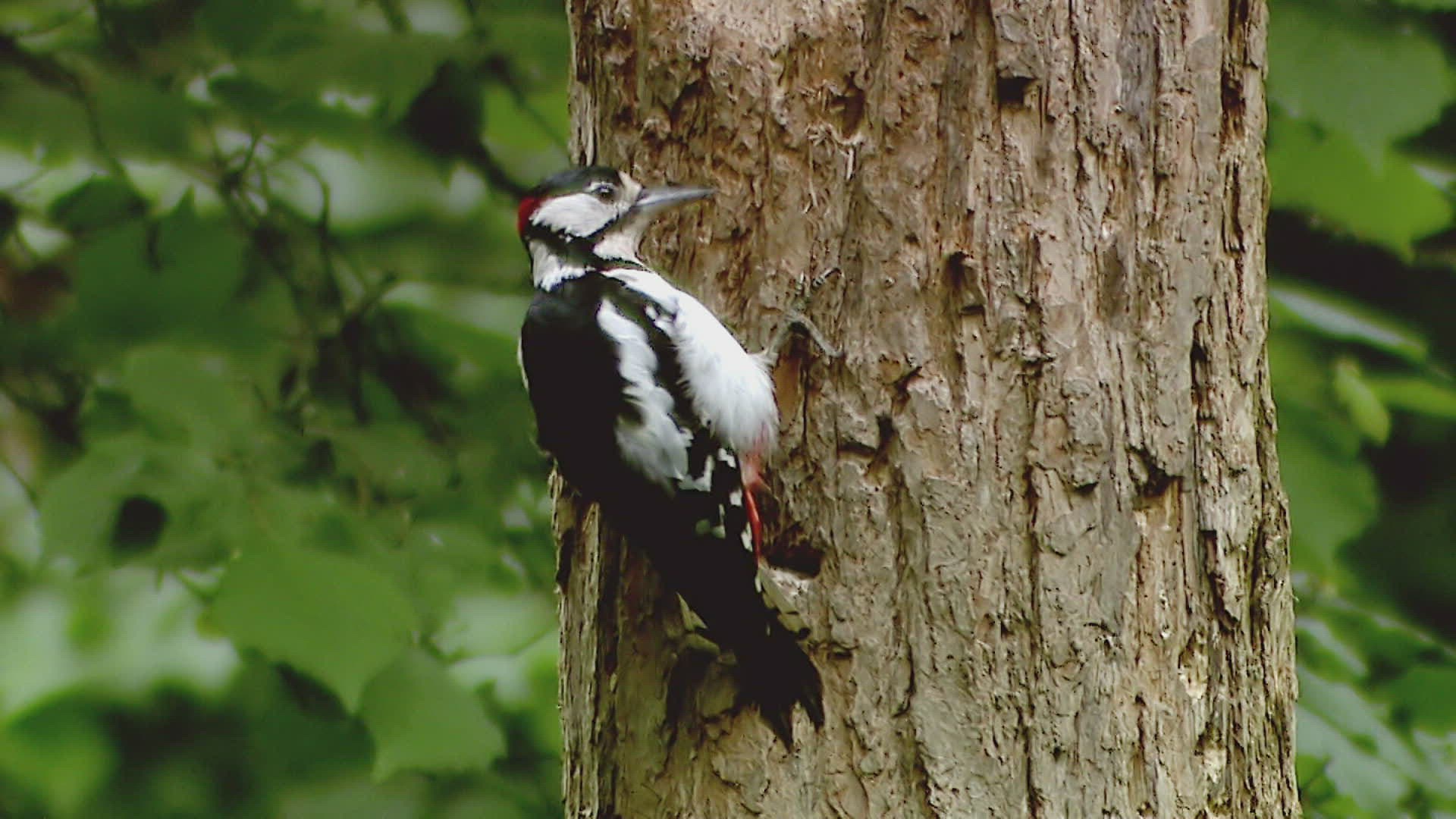 Great spotted woodpecker (Dendrocopos major) feeding baby