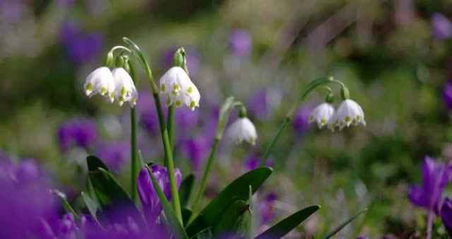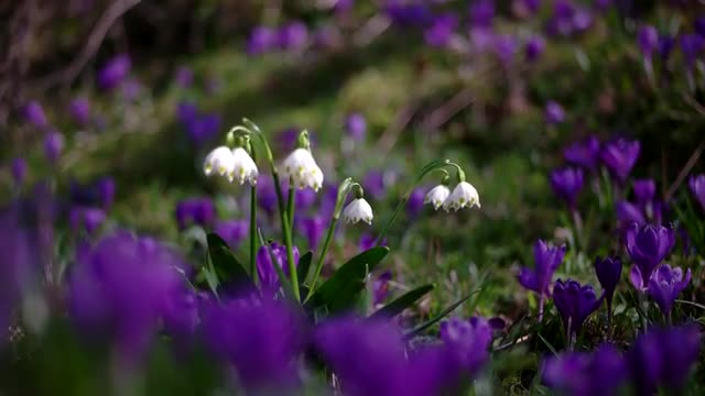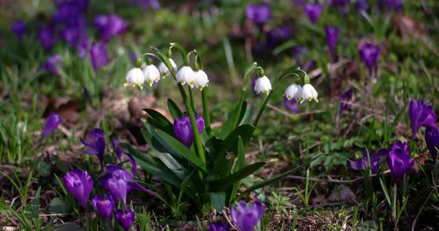 > Spring snowflakes (Leucojum vernum) in forest