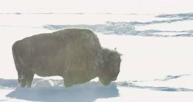 > Bison standing in the cold.