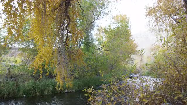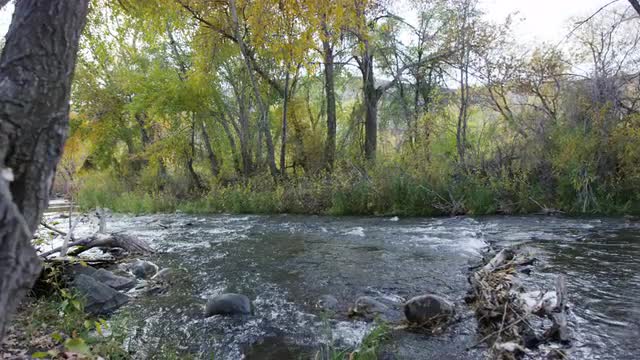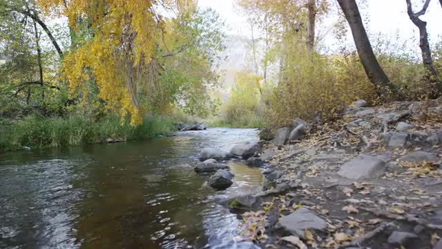 815027 - Leaves moving through water current during sunset time-lapse