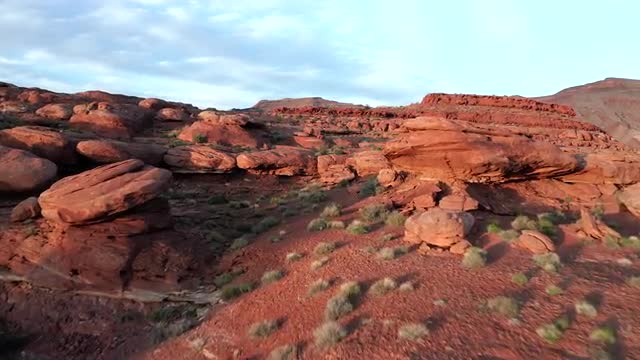 1066586 - Flying over mushroom rocks near Mexican Hat, Utah