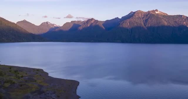 1035697 - Aerial view with drone with Lake Llanquihue and the Calbuco Volcano at sunset