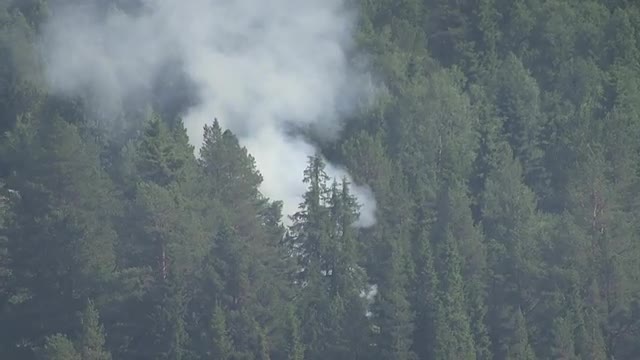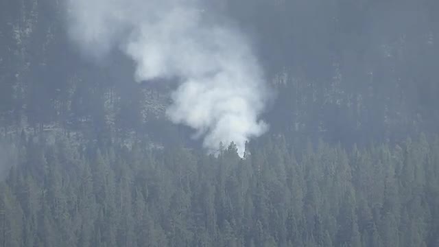 Wild fire burning through mountain ridge line in Utah called the Dollar Ridge Fire near Soldier Creek and Strawberry Reservoir in Utah in the summer of 2018. The wild fire started July 1st 2018 and burned many structures and around 60,000 acres of land.