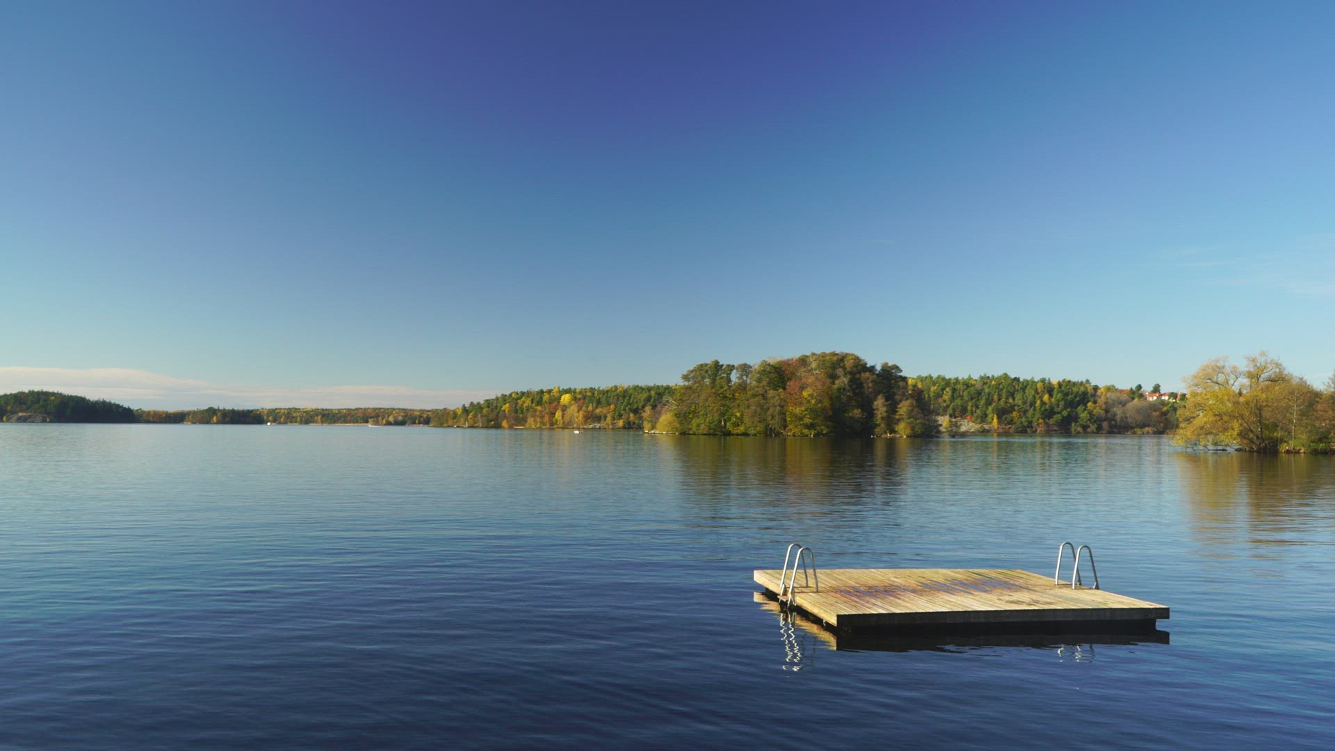 empty jetty floating in water in lake in Sweden