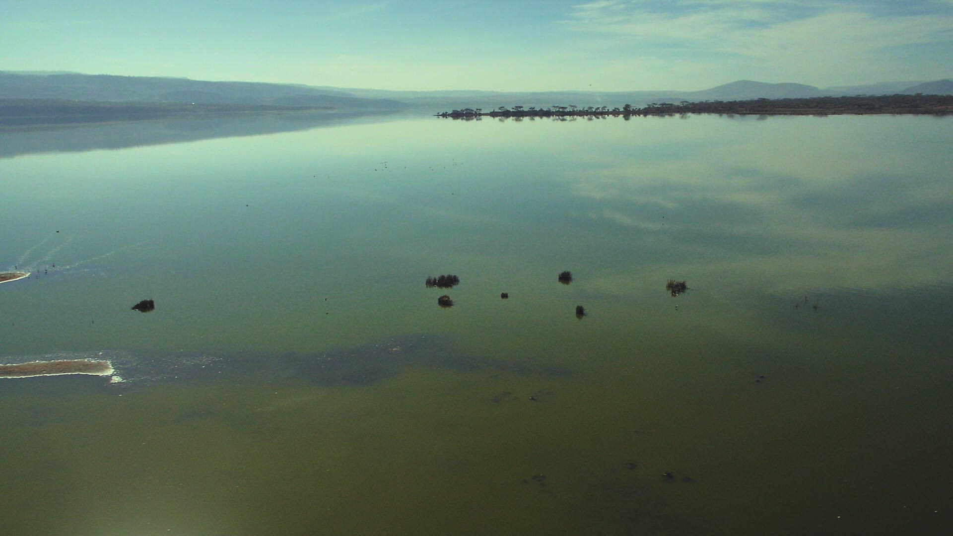 View of person paddling kayak over crystal clear water on lake in the Uinta Mountains in Utah.