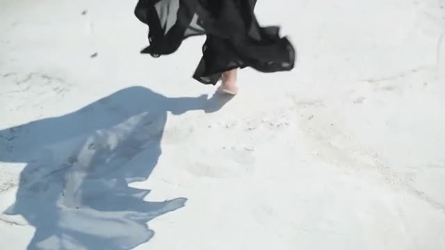 Beautiful young woman posing outdoor at the rocky sea shore , slow motion