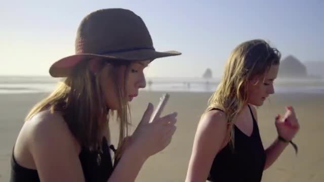 Young beautiful woman taking selfie with phone outdoors during beach vacation