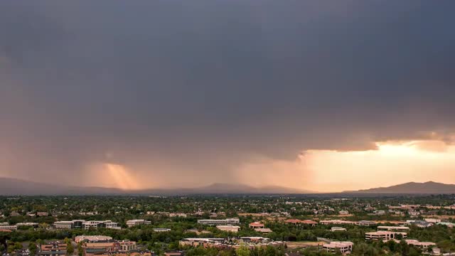 Time lapse of sun rays shining over Utah Valley during storm