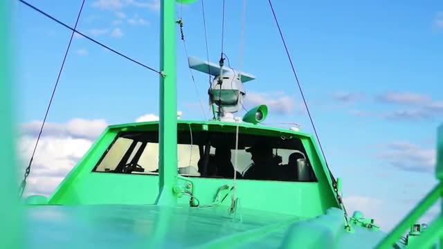 Flight Over Moored Yachts and Boats near Embankment, sunny day