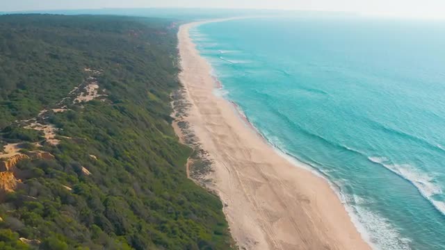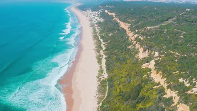 Flight over Sandy Beach near Nazare City