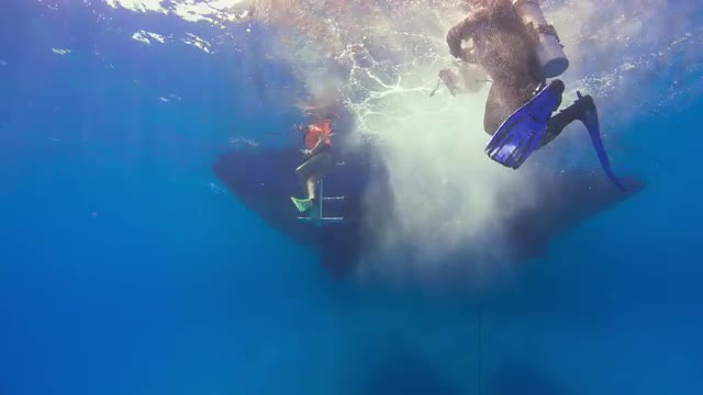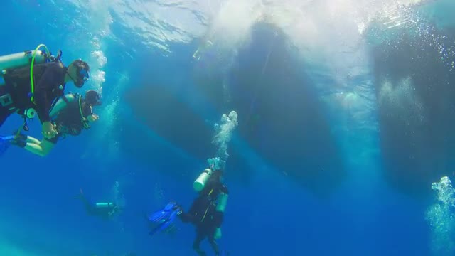Divers Jump Into the Water Before Diving, underwater scene