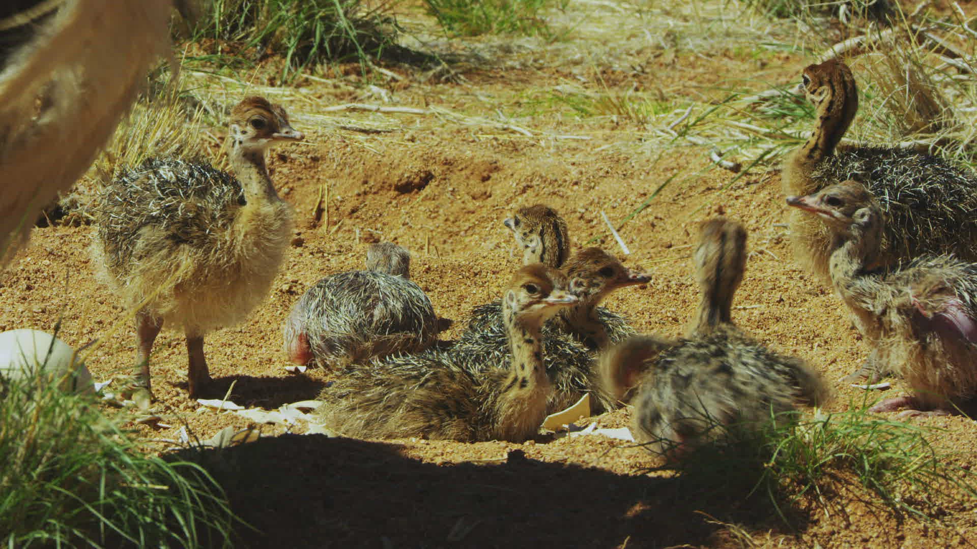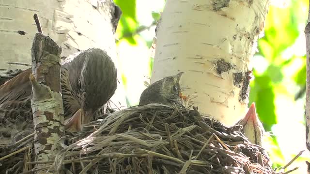 Nest with chicks close up. Nestling in the nest. Newborn chicks hatched from eggs. The bird mother feeds the chicks in the nest. 4k resolution.