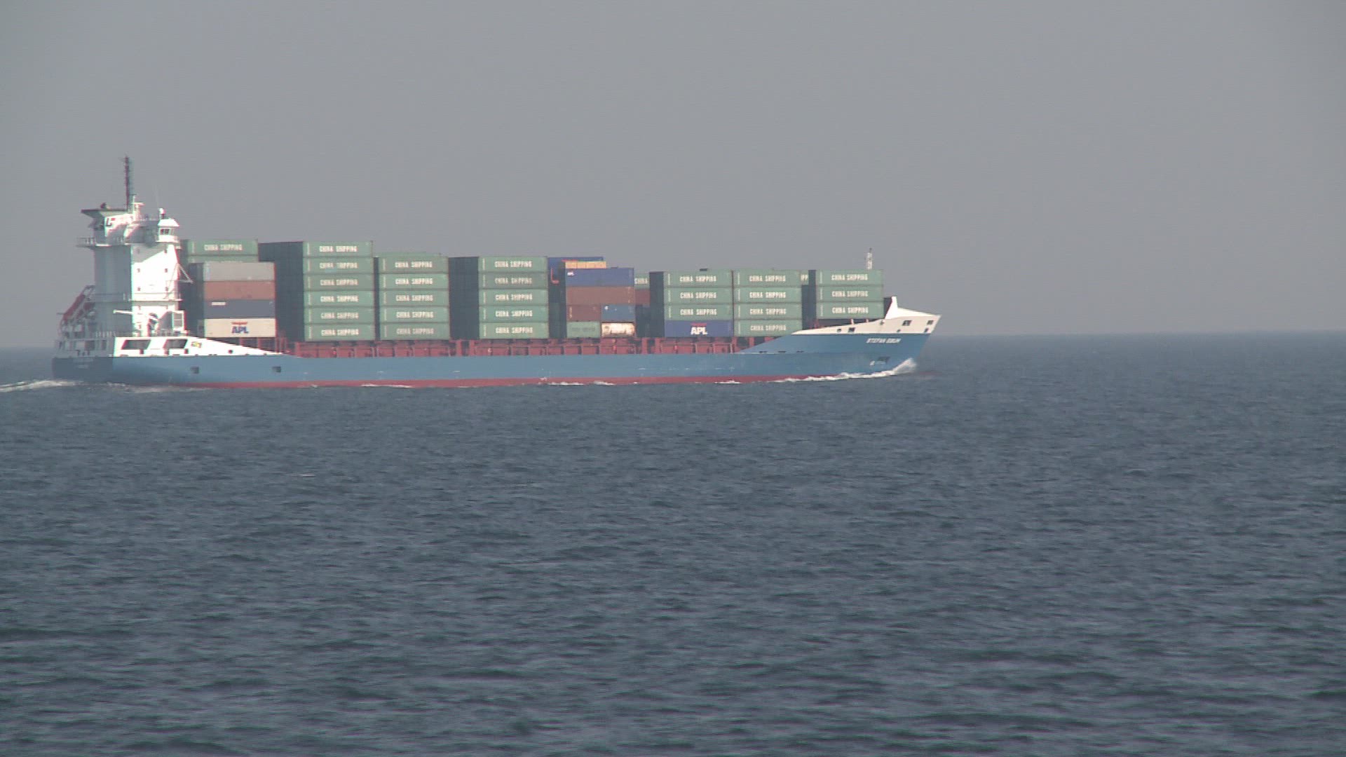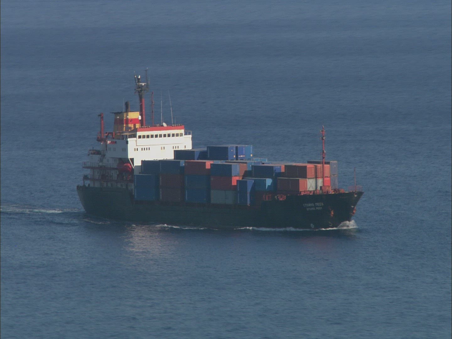 aerial footage cargo and passenger port with barges and cargo ships.Travel concept.