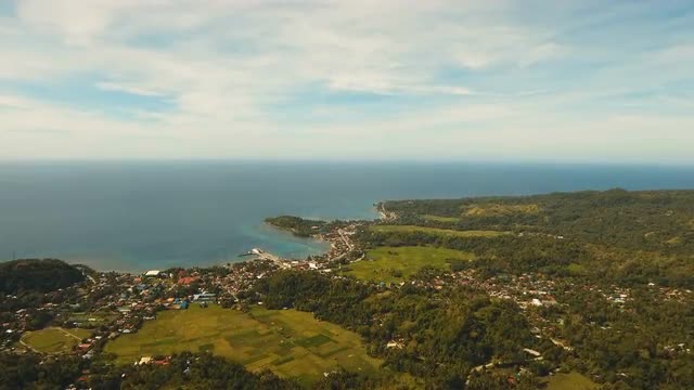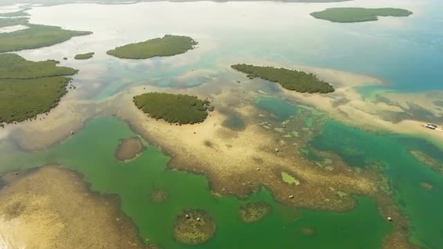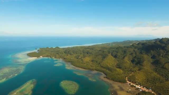 aerial footage seascape with coast, lagoon with turquoise water tropical island Bohol, Philippines. Tropical landscape, travel concept