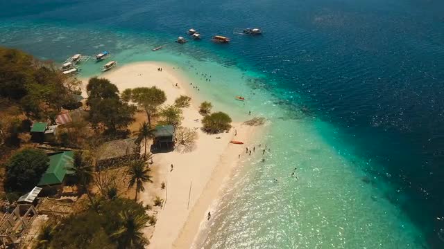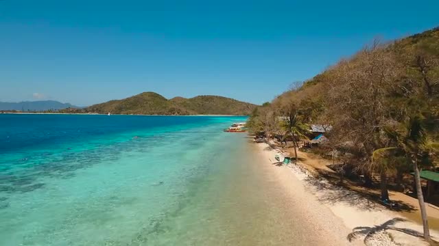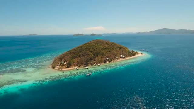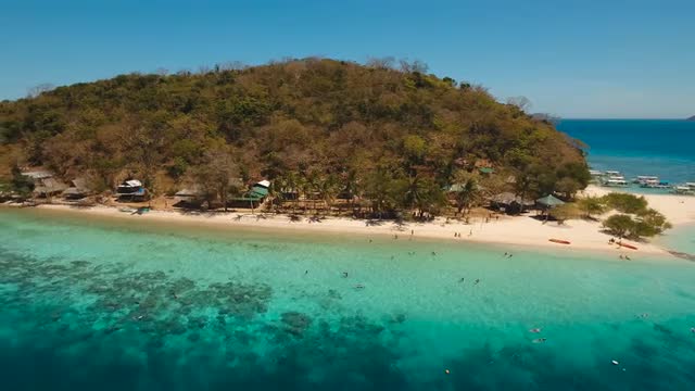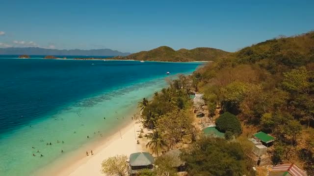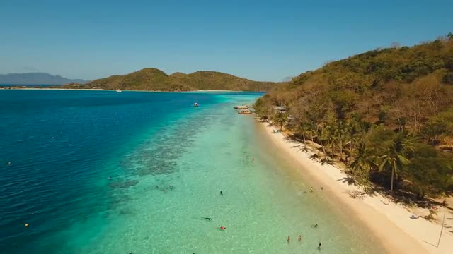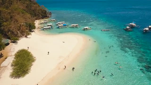 aerial footage mountain lake Kayangan with turquoise water among the high rocks on a tropical island. Palawan, Philippines Travel concept
