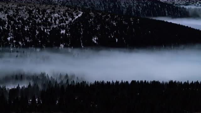 Slow static shot of the moon at night with a view of clouds moving in front of it.