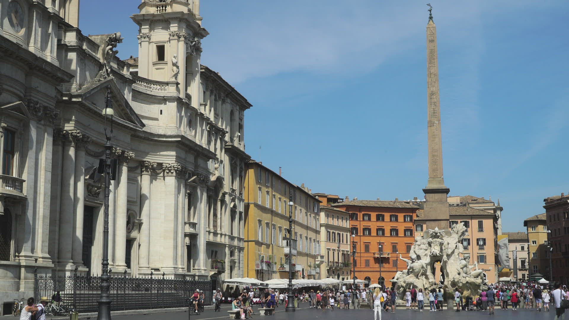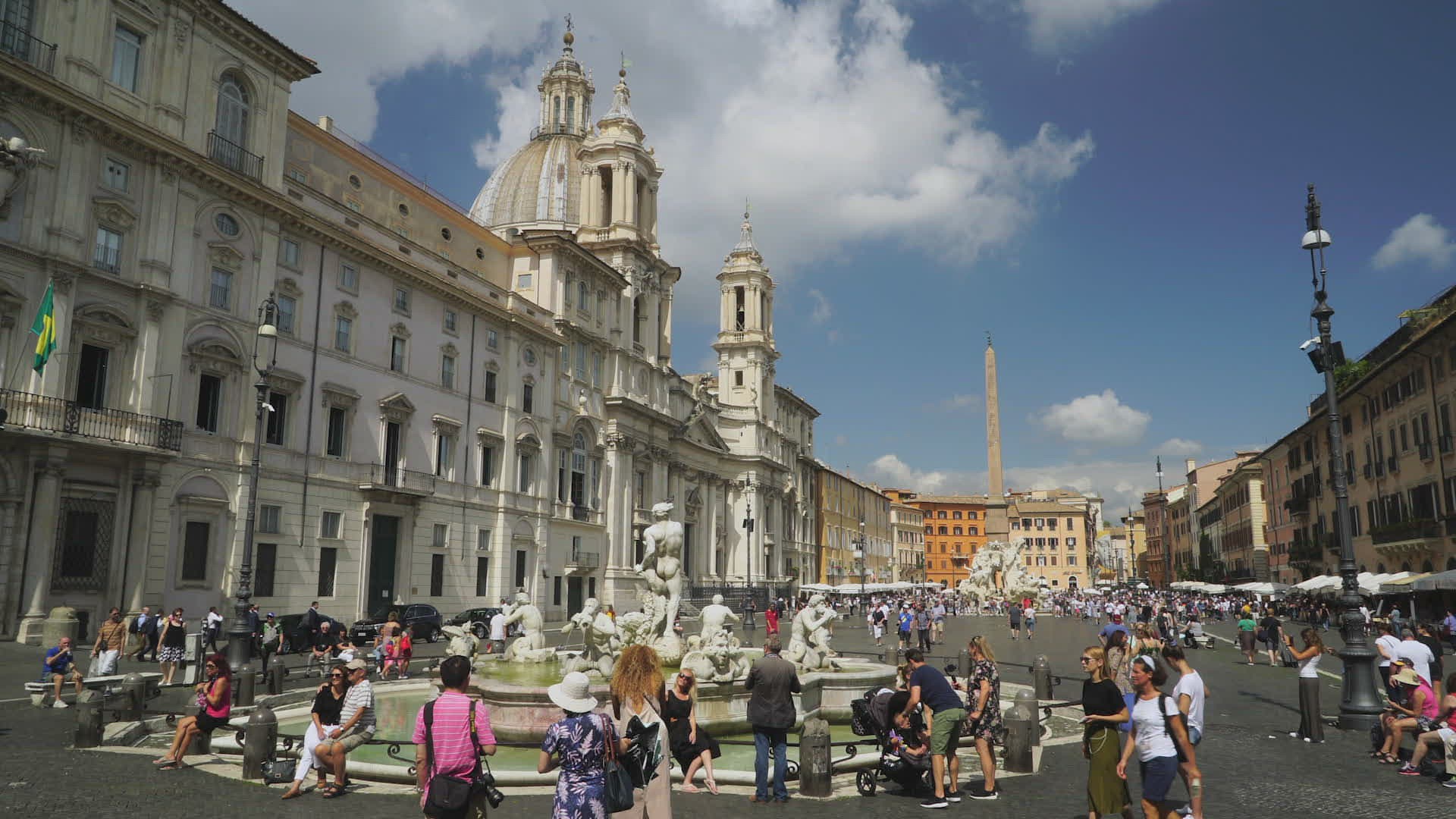 > tourists at Piazza Navona, Rome