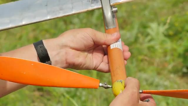 615399 - Adjustment of a Hub of Air Propeller in Aircraft Model Sports Competition Outdoors Man is Preparing