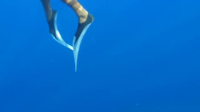 Diver Moves Flippers Underwater, Slow Motion, Close Up