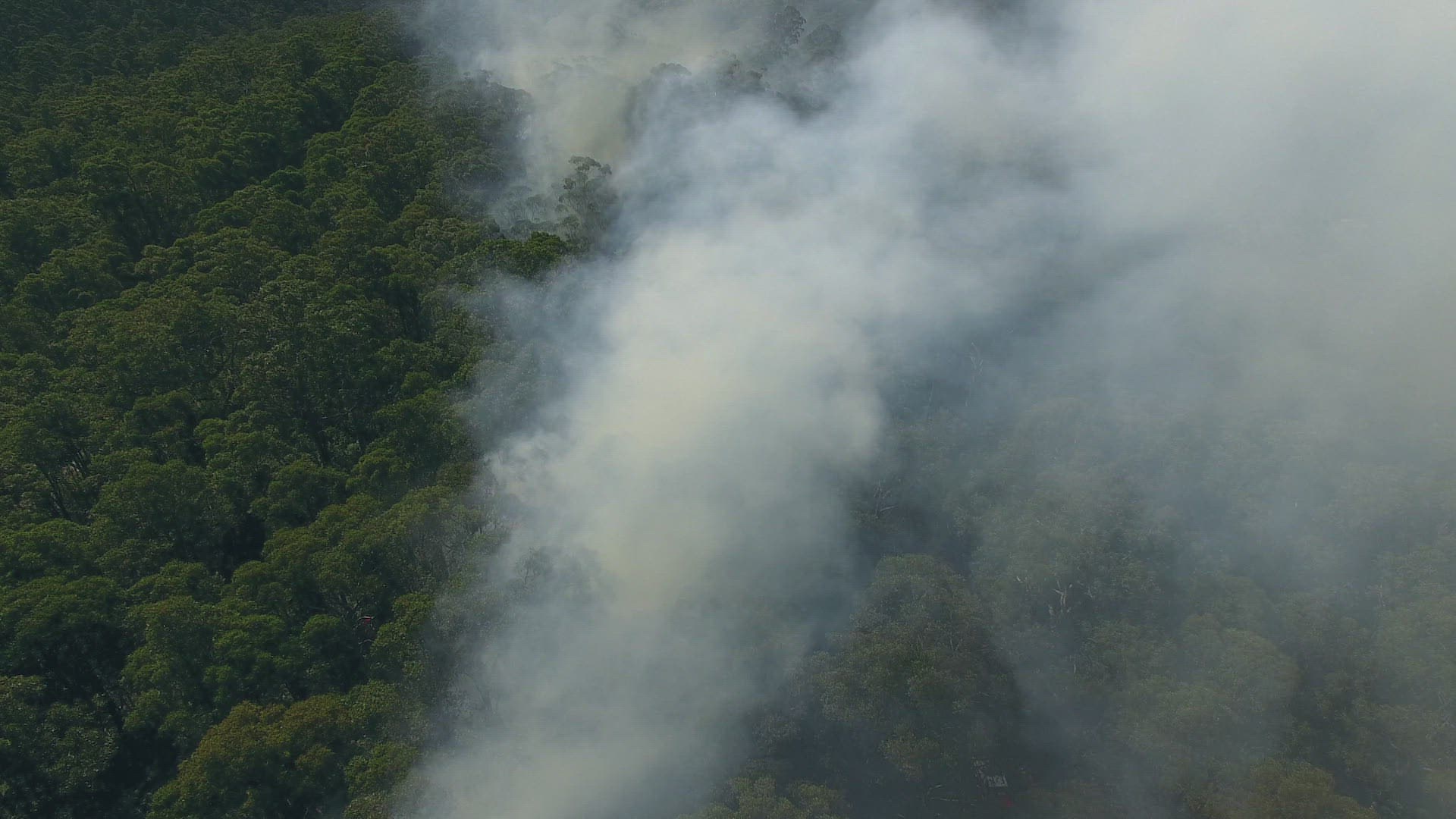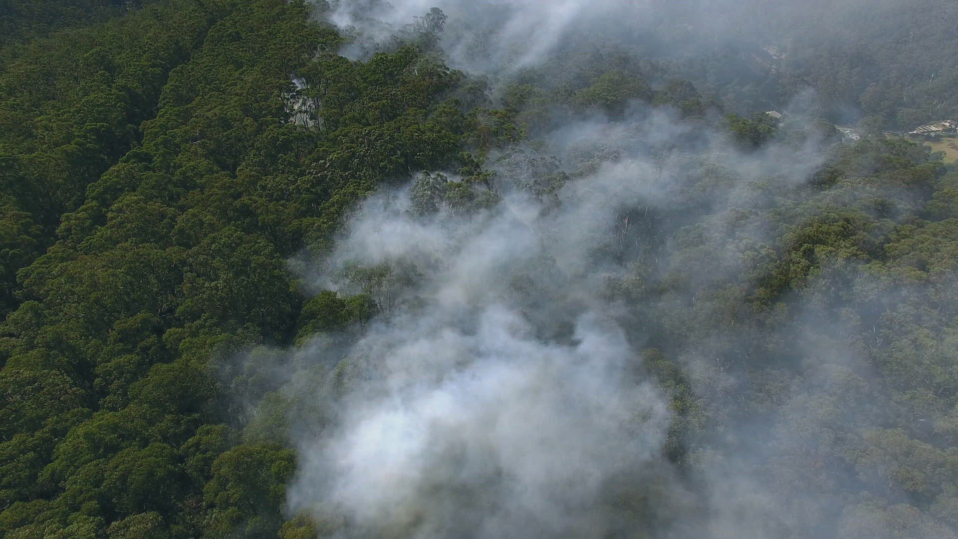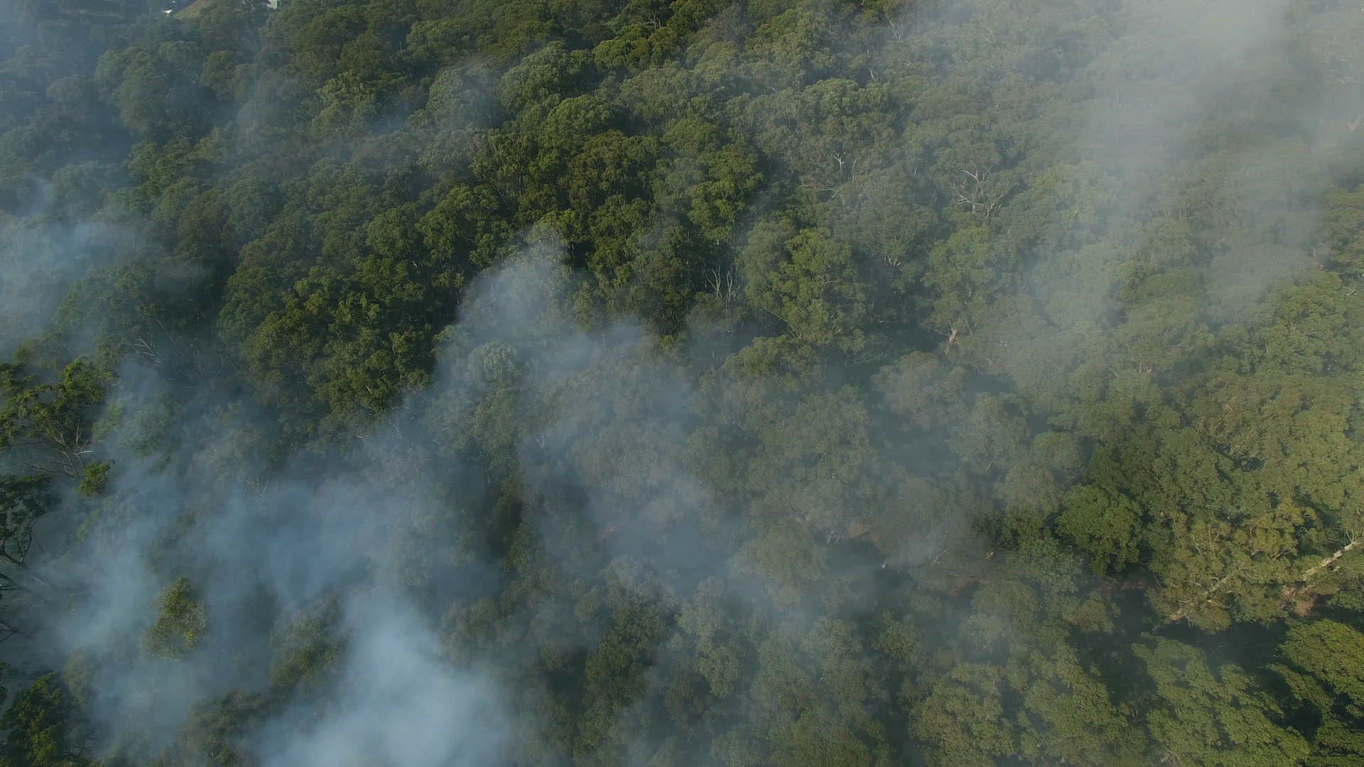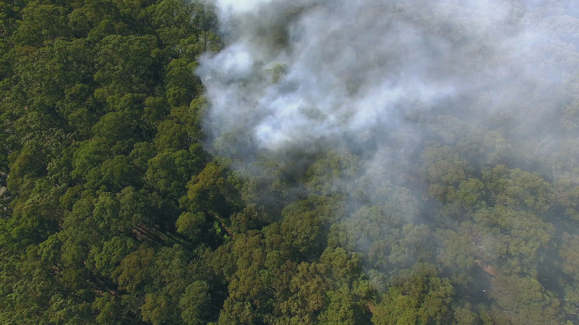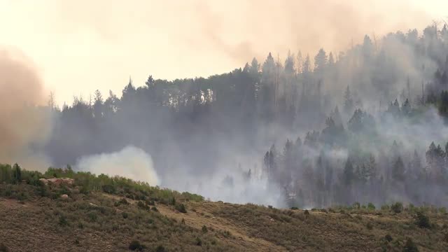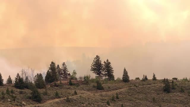 1008232 - Wild fire burning through forest sending smoke through the sky