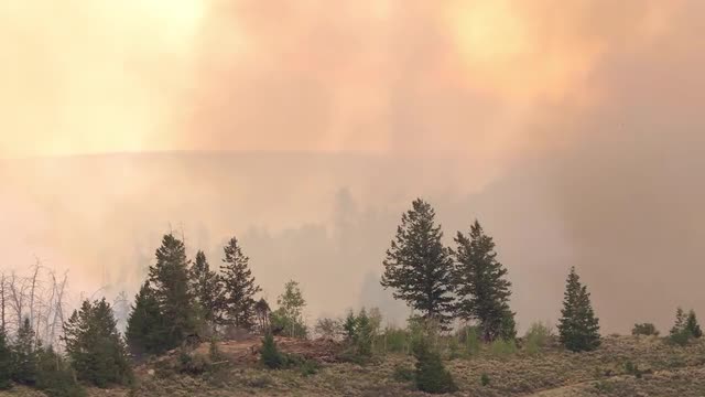 1008229 - Wild fire burning through forest sending smoke through the sky
