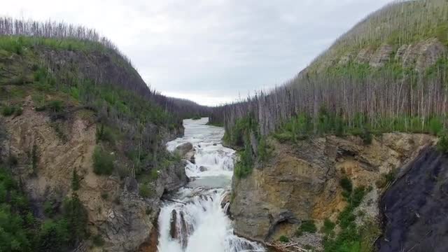 > Helmcken Falls wide shot morning mist