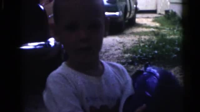 628541 - 1967: two young kids outside playing with round donut shaped inner tubes PENNINGTON, NEW JERSEY