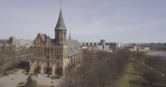 Cathedral of Kant in Kaliningrad. Clock in medieval style with gold sun and moon.
