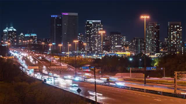 4K Video Sequence of Toronto, Canada - Aerial bird eye view of the Toronto Highway 401 and the Don Valley Parkway called DVP