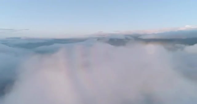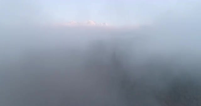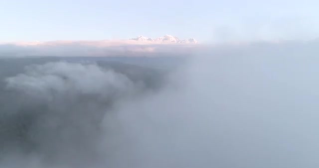 > An aerial fly through the clouds looking back at Fox Glacier Mountain Range on the West Coast of NZ.