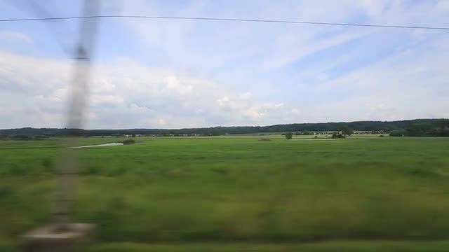 > Aerial high angle landing at Warsaw airport Polish countryside