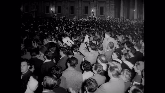 Slow motion of Pope Francis at St Peter's square riding popemobile, people