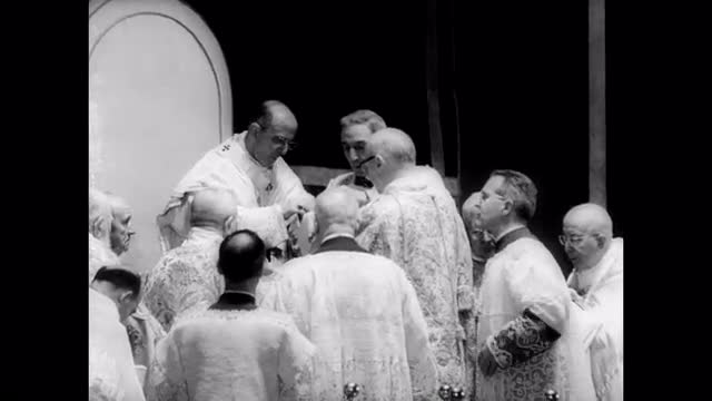 > Slow motion of Pope Francis at St Peter's square riding popemobile, people