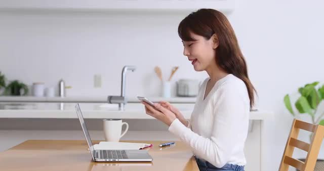 > Young Japanese woman working remotely