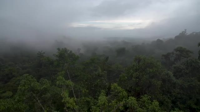 2145858 - Aerial view tropical rainforest in morning moving cloud