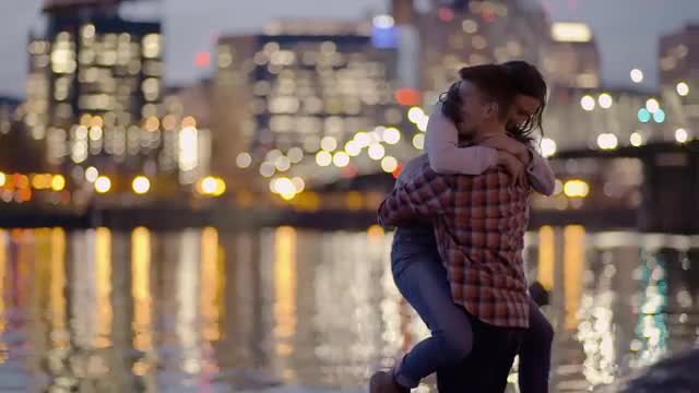 576170 - Woman Runs Down Dock And Jumps Into Her Boyfriend's Arms, He Spins Her In A Circle