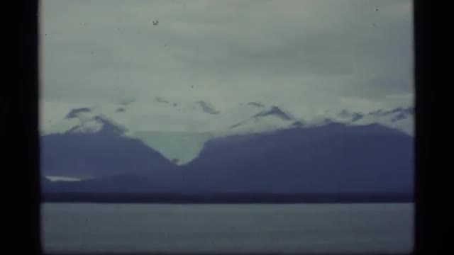 681858 - 1977: panorama of a mountain valley with trees and jagged peaks with two people; boats moored at mar