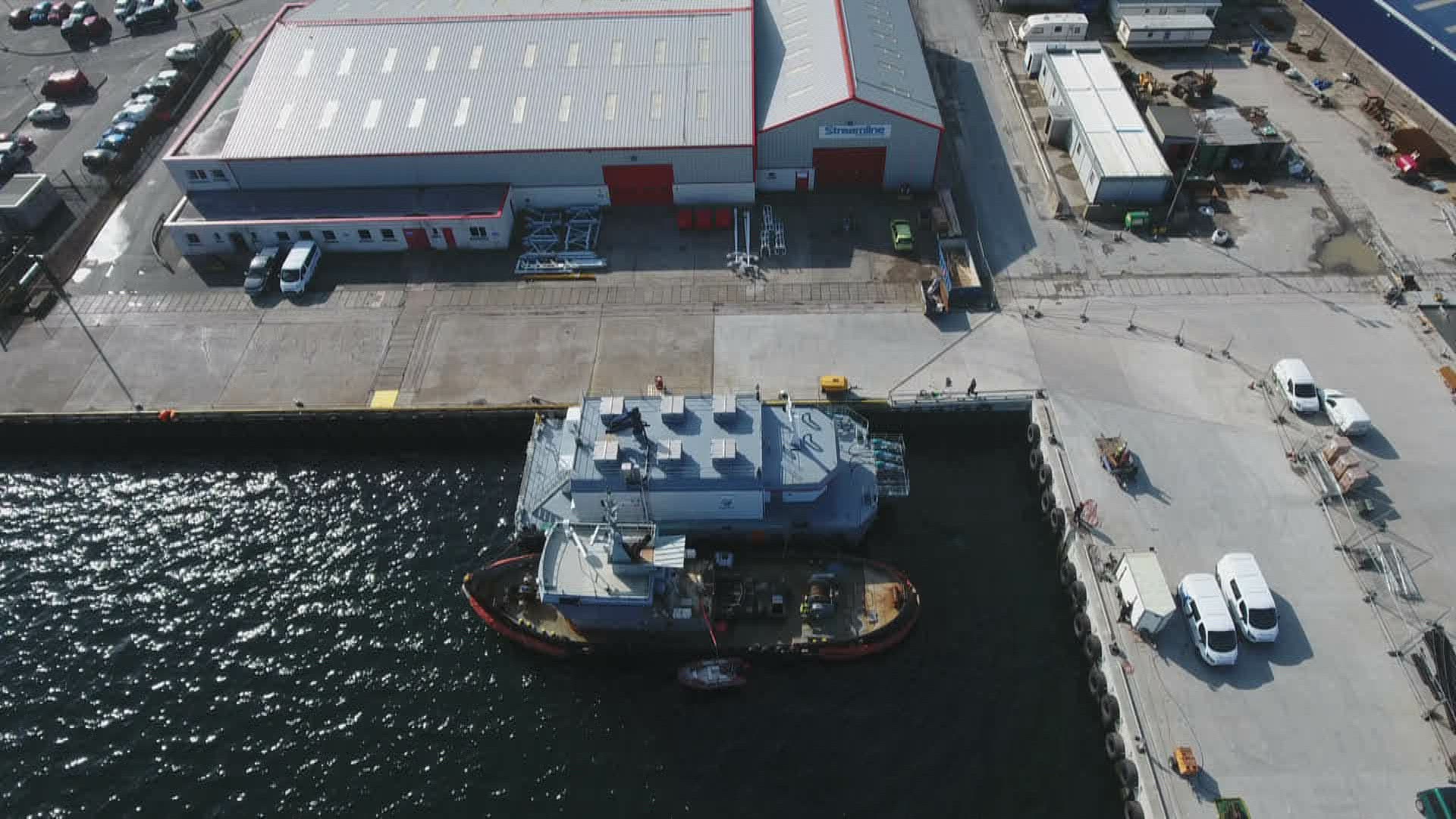 Aerial view of houses, seaside and quay in Nea Kallikratia, Greece