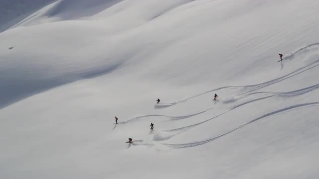 471565 - Beautiful Mountain Peak - Helicopter Landing - Skiing - Slow Motion