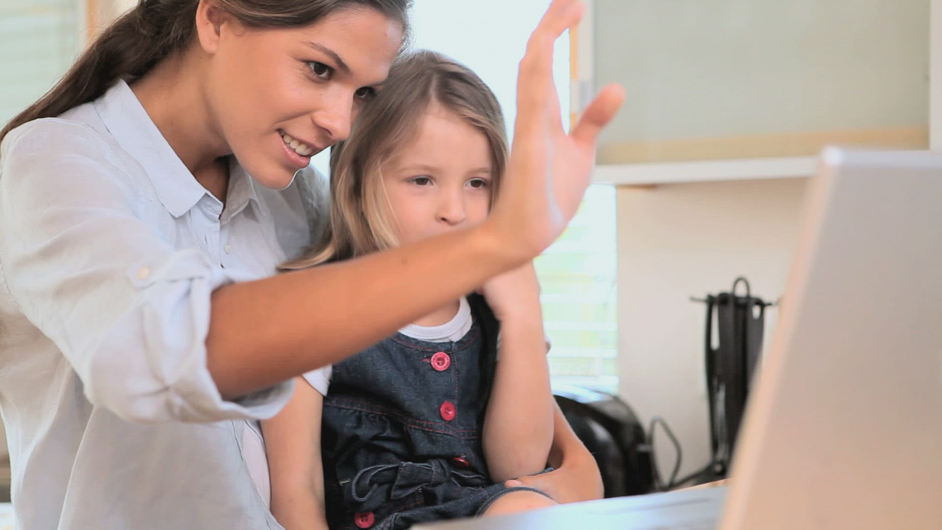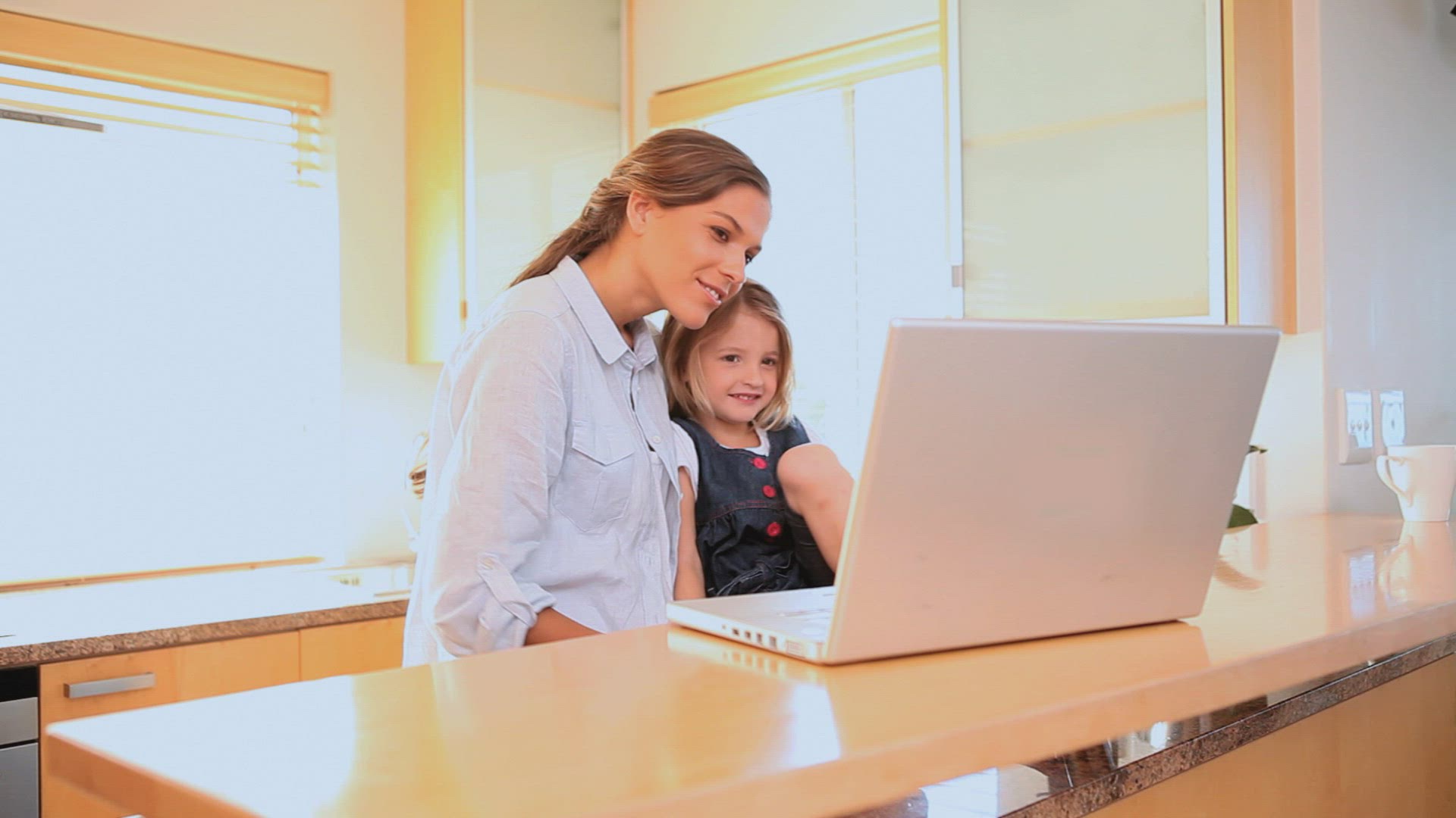 Slow motion shot of a woman with baby at the beach. They sitting near the sea and having a video call on smart phone
